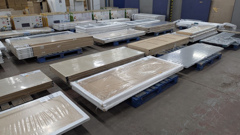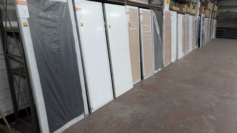 Mostly Oak, includes finished and unfinished, fire doors, glazed, black doors, etc