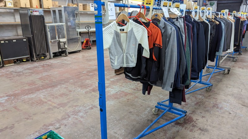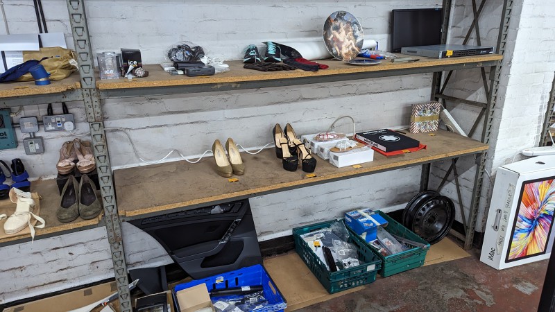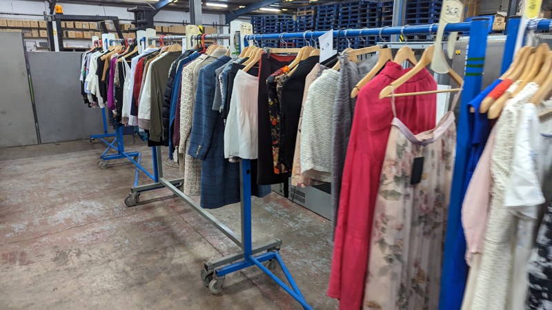 The lots include a large quantity of designer clothing (primarily ladies), footwear, accessories, childrens clothing & backpacks, quantity of Rapha ladies cycling clothing, automotive parts, canvas box prints, framed pictures and more