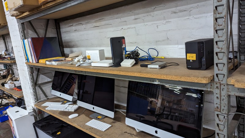 Desks, cupboards, cabinets, operators chairs, executive chairs, meeting chairs, office equipment, 4x Apple iMacs, storage & networking equipment including NAS drives, Xerox Versalink C7000 A3 printer, mobile phones, tablets and more