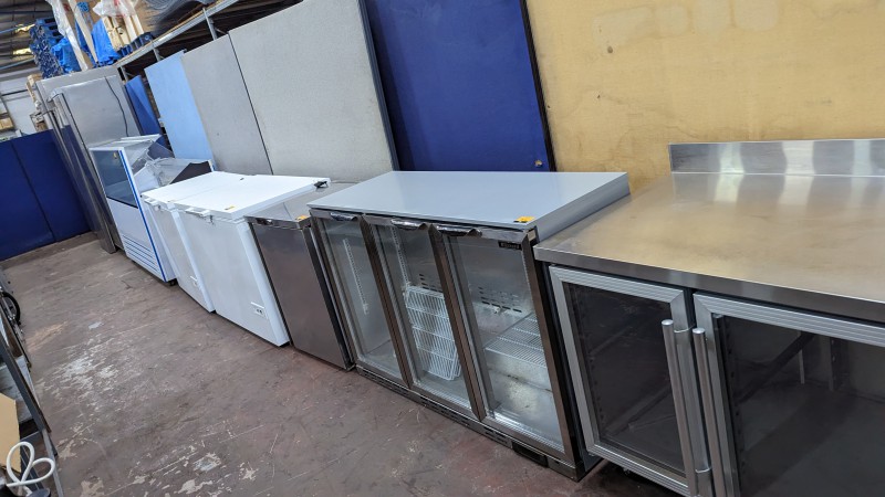 Refrigeration including blast chillers, refrigerated prep cabinets, single/double/triple door back bar / bottle fridges, saladette units,  single & double door refrigeration from small to large including stainless steel, white & clear door, open front retail display refrigeration, chest freezers from small to large including retail clear topped and metal topped, ice cream freezers, etc, etc